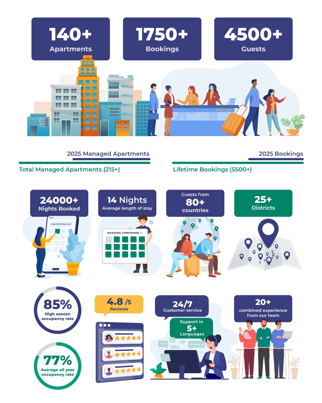 Behind these results is a dedicated team with over 20 years of combined experience, providing 24/7 customer service and support in more than five languages. Their professionalism and attention to detail continue to shape the experience we offer every guest and homeowner.